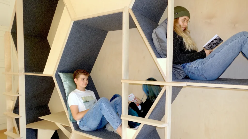 ​Lernwaben® eignen sich für den Einsatz in Bibliotheken, Hochschulen, Coworking Spaces, Büros, Schulen und Kindertagesstätten. Kurz: überall, wo Möglichkeiten zur Fokussierung, zum Austausch und zur Erholung gefragt sind.