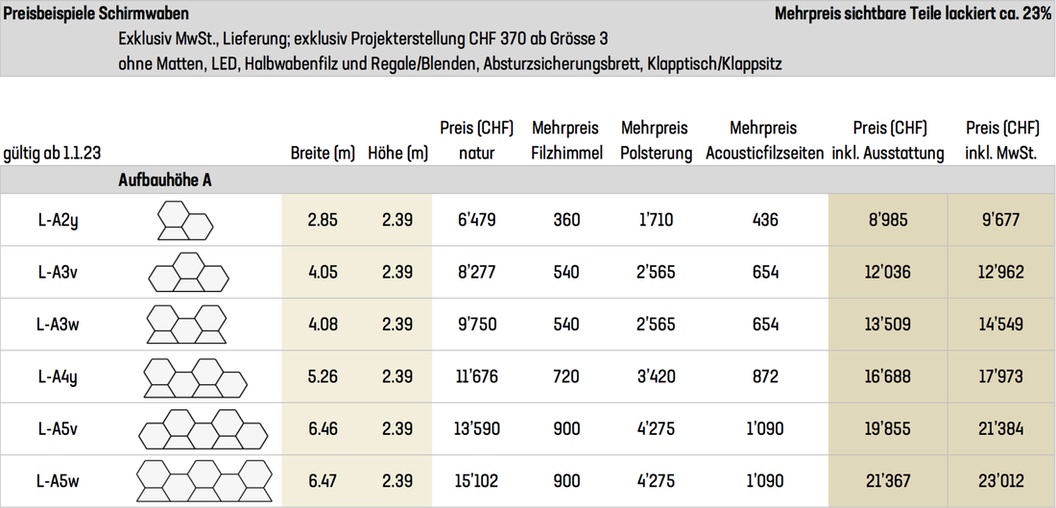Die Grösse entspricht der klassischen L-Wabe mit einem erhöhten Sockel.